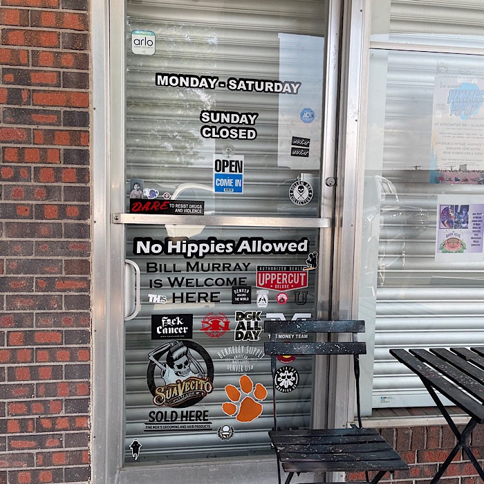 We parked the truck and started walking to the restaurant and passed this door. It was funny enough that we both had to take a picture of it.
