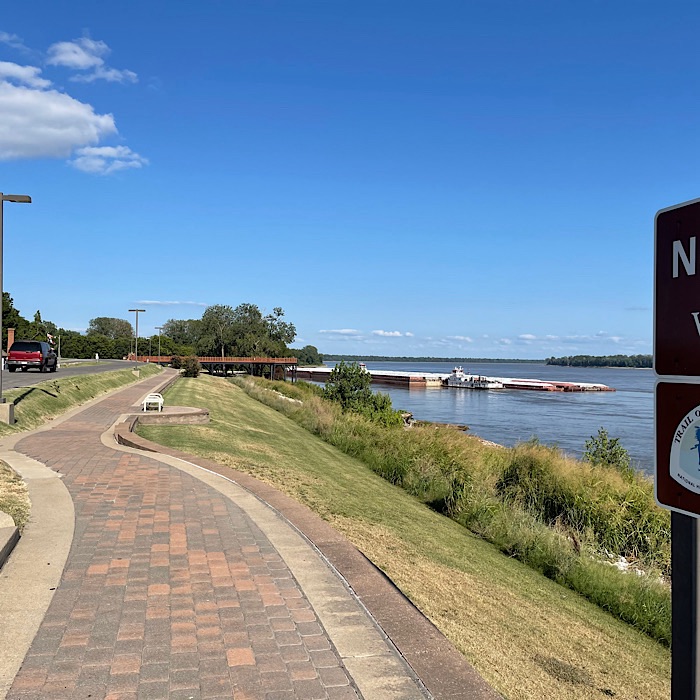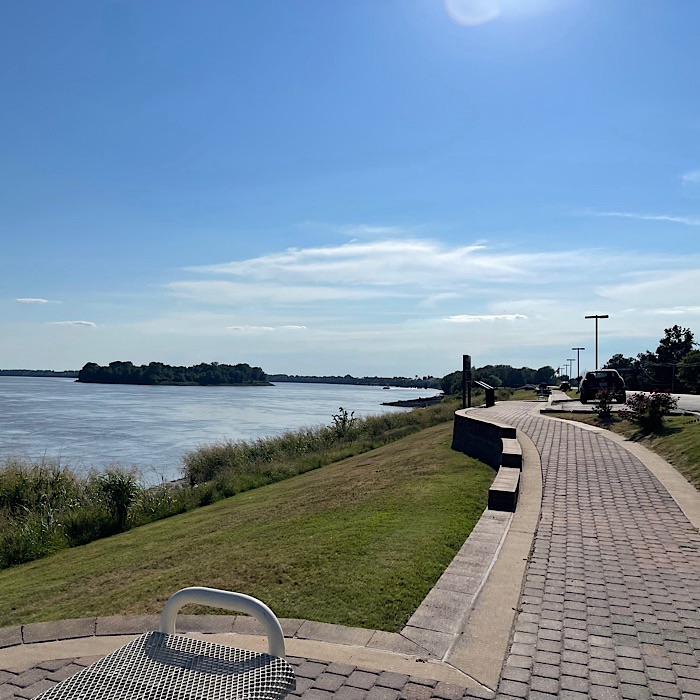 We arrived too late to tour the museum. We crossed road to the pier, which is one end of the New Madrid Mississippi Riverwalk.