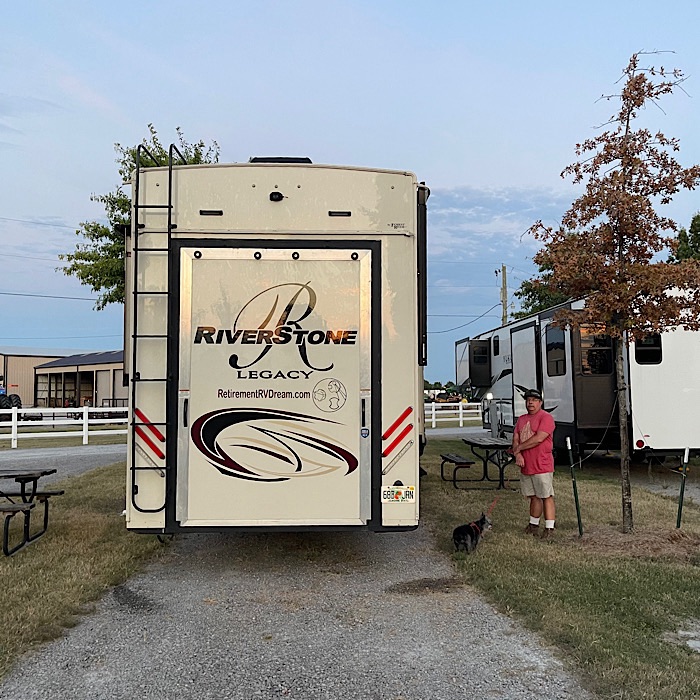 After riding around Sikeston, Missouri on August 8th, we rode home to the RV. Nox was happy to see us.