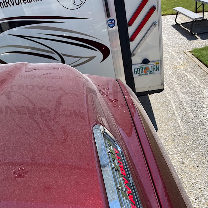 On Sunday (August 11), before we headed out, I noticed just how dirty Cliff the Big Red Truck had gotten. It had been so clean and gleaming, just a short time ago.