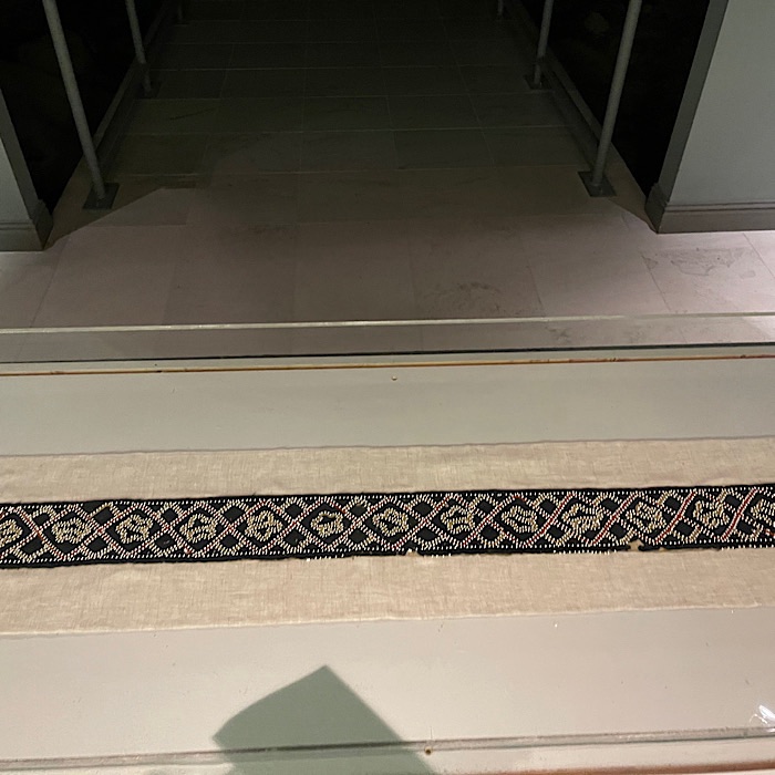 The room the petroglyphs were in resembled the cave the petroglyphs came from. It was dark and you had to press a button on the right wall. Dim lights shown on the petroglyphs in a timed display.