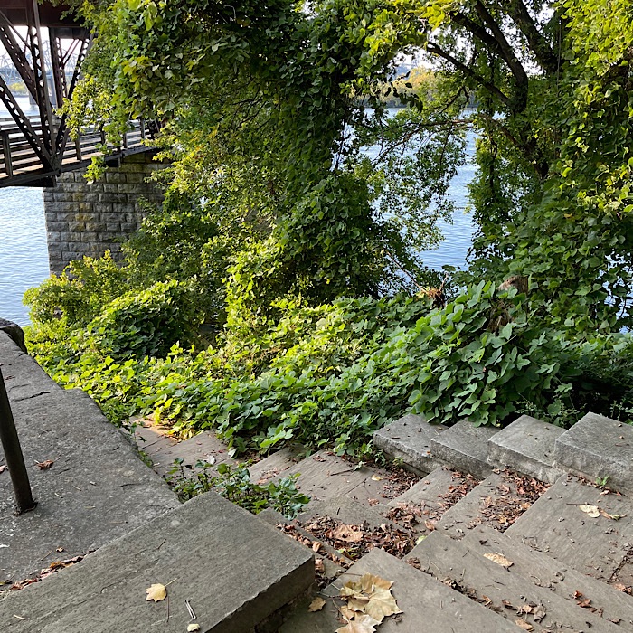 After we got back to the beginning of the bridge, we walked down the stone steps to the riverbank.