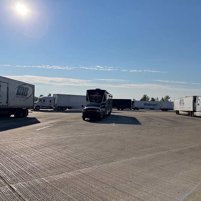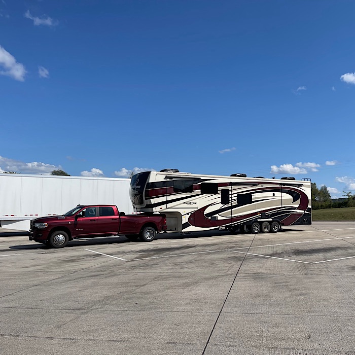 I didn’t get any pictures of the RV while we were at the factory. I did admire the beautiful new RV sitting in the lot.