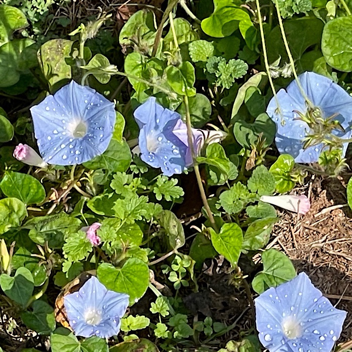 I admired the morning glories and the sulfur butterfly visiting the blooms.