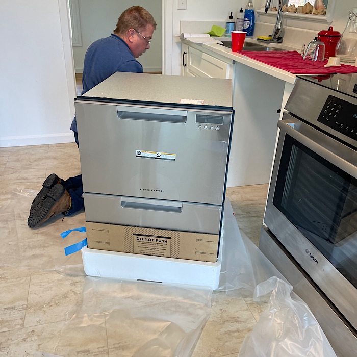 Yesterday, we started installing the new dishwasher that was delivered while Bruce was at his dad’s.
