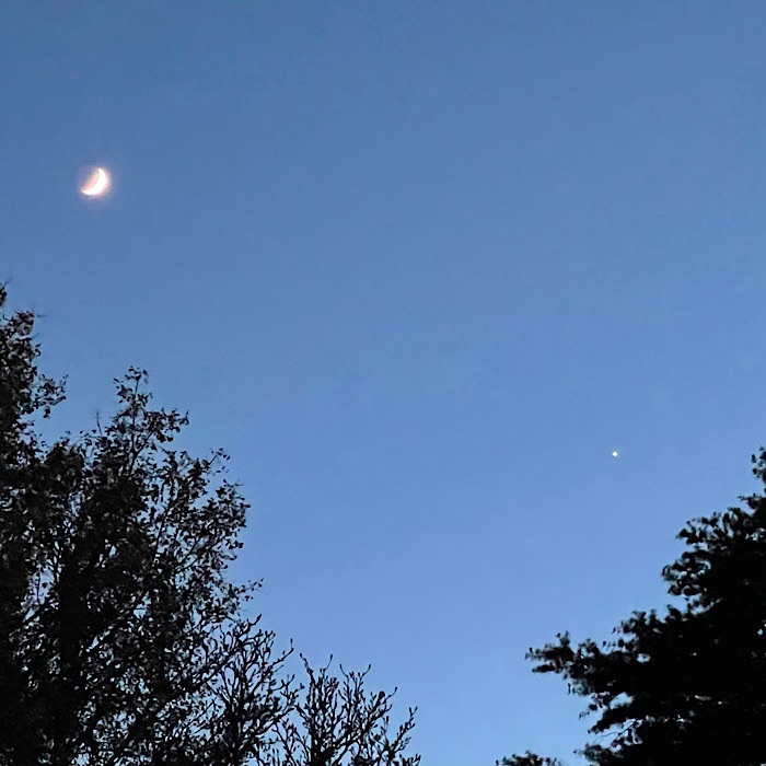The moon and Venus were spectacular last night at sunset. I excitedly mentioned it to Bruce and he said, “Oh yes, I was going to point them out to you.”