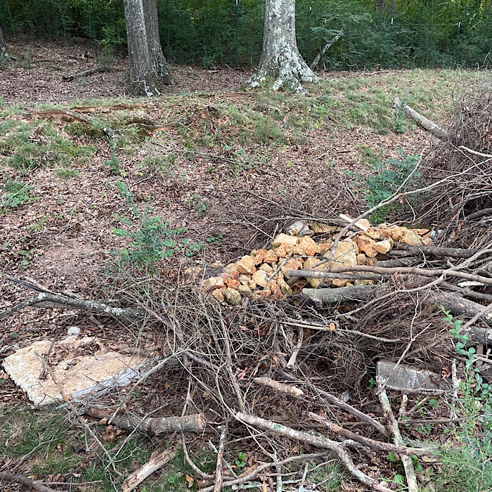 While Bruce cleaned the roof, I pulled more branches from the ditch. We are planning to put all the branches next to the ditch, instead of in the ditch. This will make it easier to gather up the wood for our next set of garden beds.