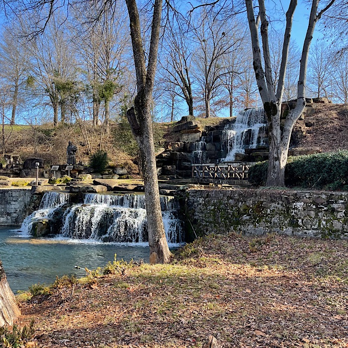 I had read in the local paper that the Cold Water Falls at the a Tuscumbia Big Spring was once again running. It is the largest man-made natural stone waterfall in the world.