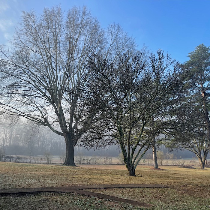 This morning, Nox was raring to get outside. Blackberry Homestead was covered in a thick blanket of fog. The fog was thicker in person than the pictures show.