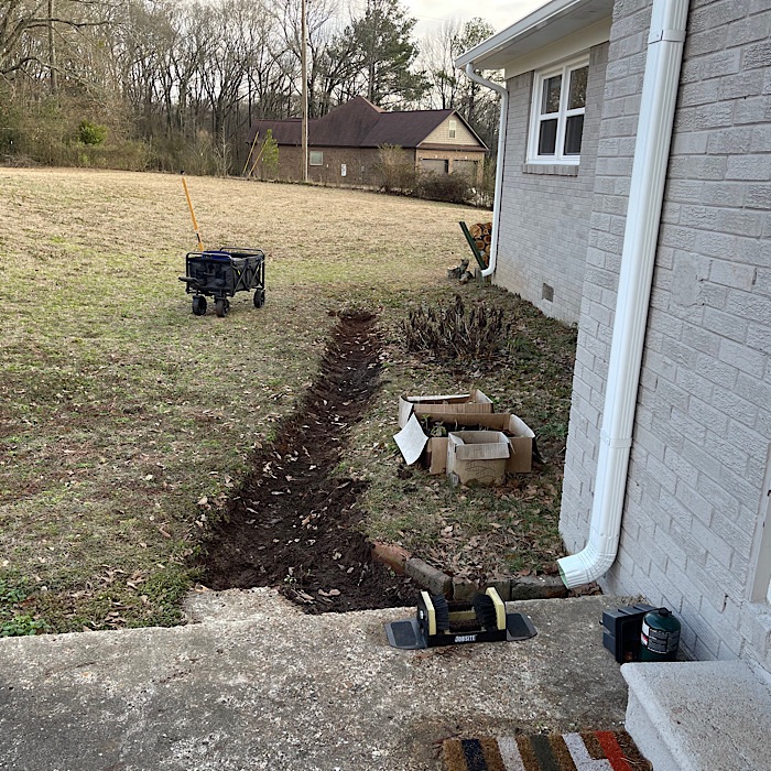 Since Bruce had been concerned about the water pouring out of the drain pipe, I decided to clear the drainage ditch.