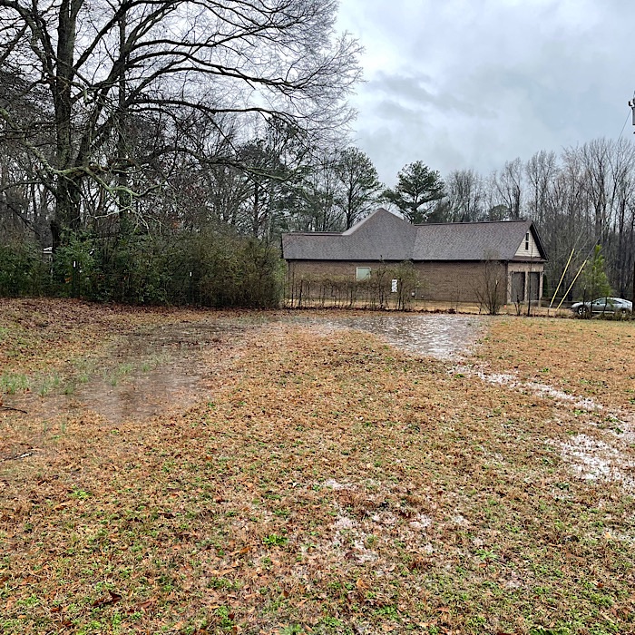 We walked around the yard during a break in the rain; there were puddles and mud everywhere.