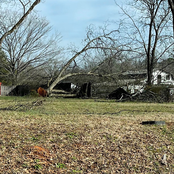 We did see trees down on County Line Road before we reached E 2nd Street (1.3 miles away) and along E 2nd Street when we went into Muscle Shoals.