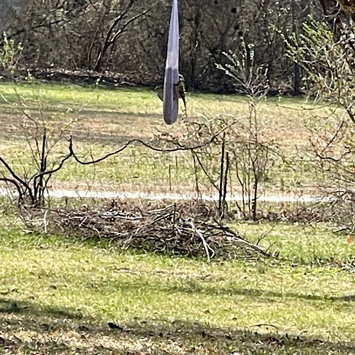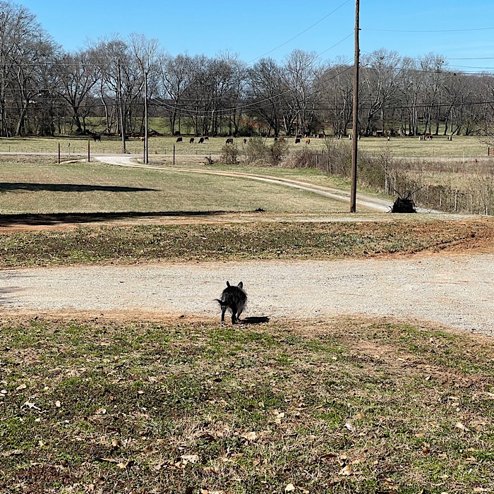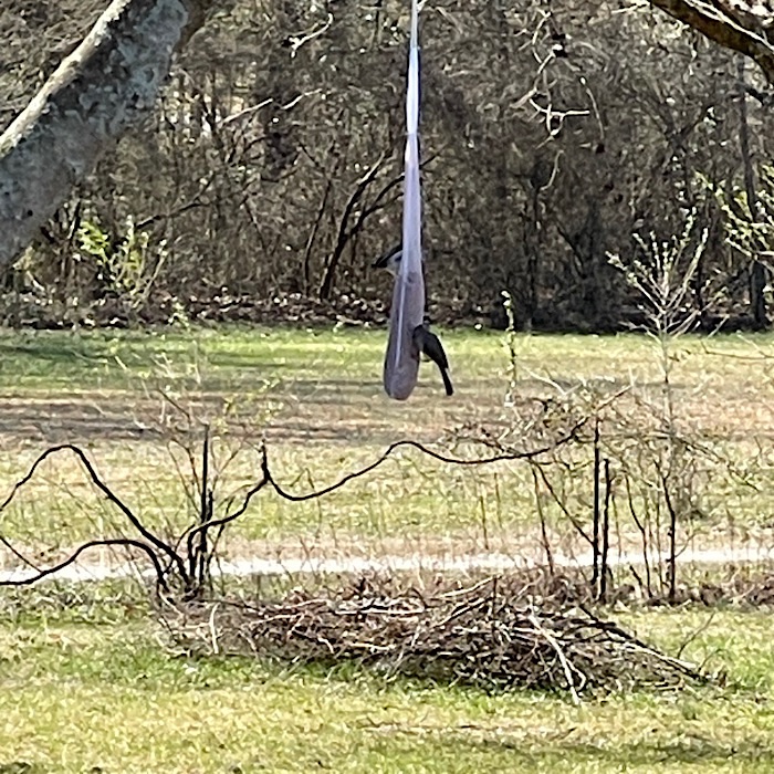To see the delivery truck, we sat in our rocking chairs on the front porch watching birds at the bird feeder, while Nox wondered around the frontal yard.