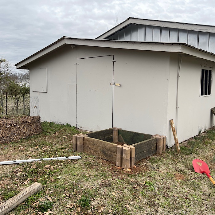 Bruce cut some old lumber we had to create the bed. We don’t expect the lumber to last and we will need to replace it at some point.
