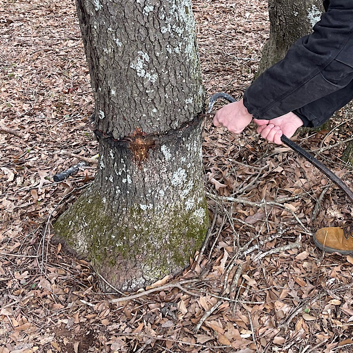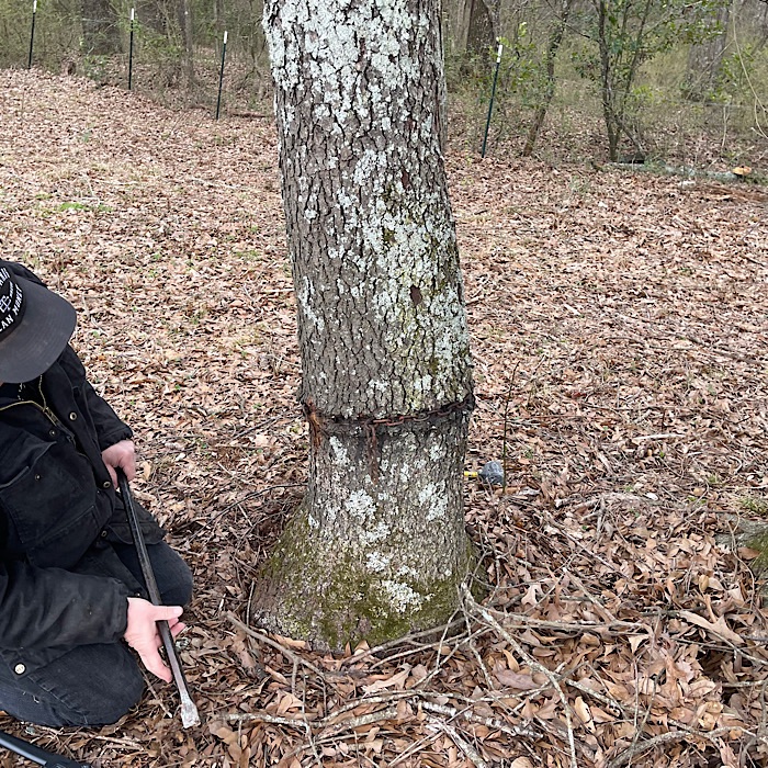 Bruce removed a chain that a tree was growing around. We don’t know if the tree is dead or not.