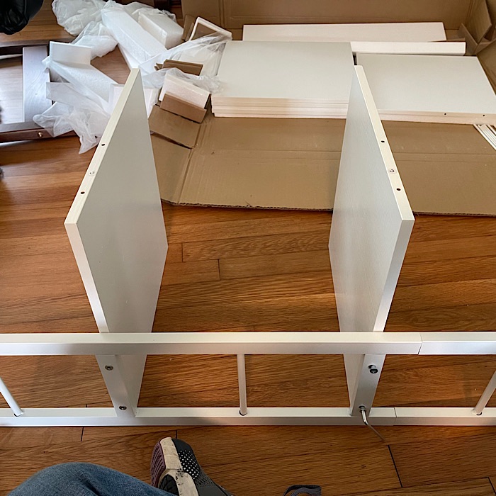 I knew it was my space saving rotating bookshelf! After eating breakfast, I assembled it.