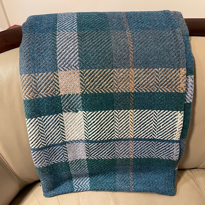 It was an expensive purchase at the time. I love the colors of the blanket. It has blue, green cream, tan and a light purple. It reminds me of the purple heather we saw blooming in Ireland.
