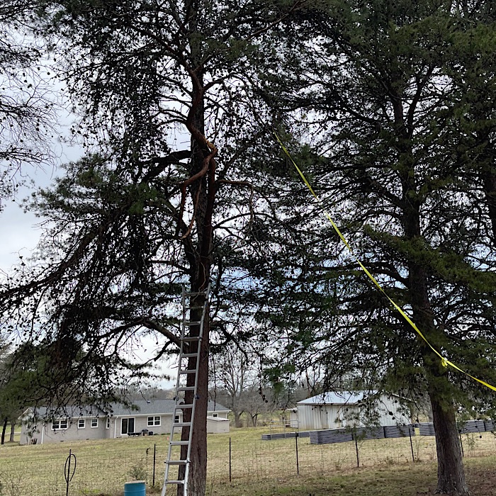 After I put the bookcase together, Bruce wanted to go cut down some hanging and dead branches.