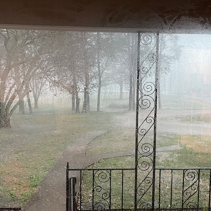 We’ve been having some ferocious weather today: a tornado watch, severe thunderstorms with warnings of flash floods and hail, a tornado warning and another tornado warning.