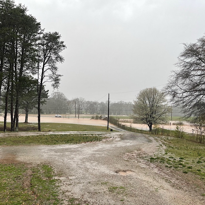 1. Based on our measurements, we got 6” of rain. While the ground was soaked and incredibly soppy, it could only absorb so much. A lot of that rain water ran off into the nearby creek which would take it into the Tennessee River. Our neighbor’s cow pasture was flooded as well.