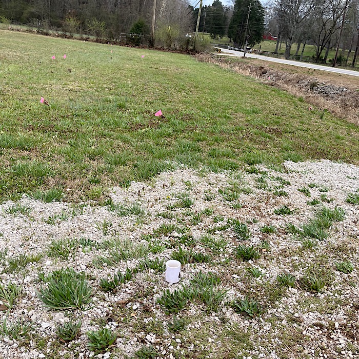 1. Before we removed all the gravel from the upper part of the hill, after every rain I had to go down to the bottom of the driveway, scoop it all up and bring it up the hill. I finally decided it could just stay at the bottom. Fortunately with the new parking pad, rocks and gravel washing down will be significantly curtailed! Can you just rake it out of the grass with a leaf rake and back into the driveway?
