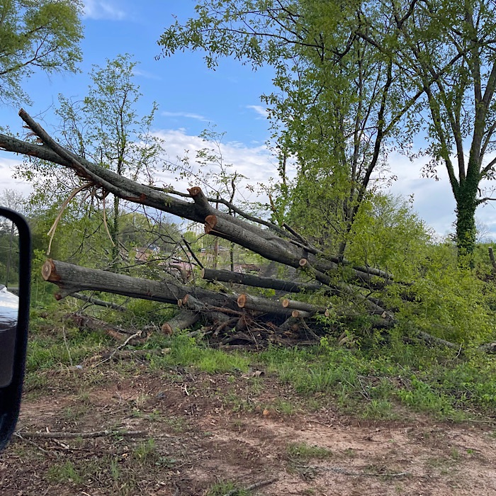 We drove home along 7th, then 6th. There were some damaged roofs and a lot of downed trees that had been cut up.