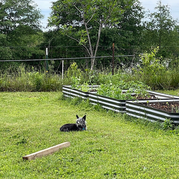 Nox made up the hill to the garden beds. That was as far as she wanted to walk. She lay down and relaxed by the garden.