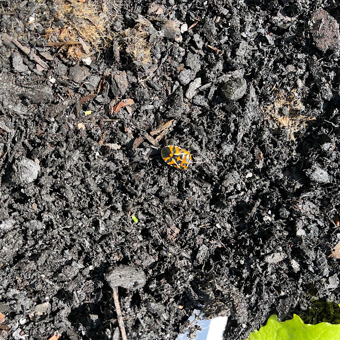 I then washed them, picking off the cabbageworms and turnip flea beetles, dropping them into soapy water. I decided to compost the very lacy leaves. There wasn’t enough on them to try and eat.