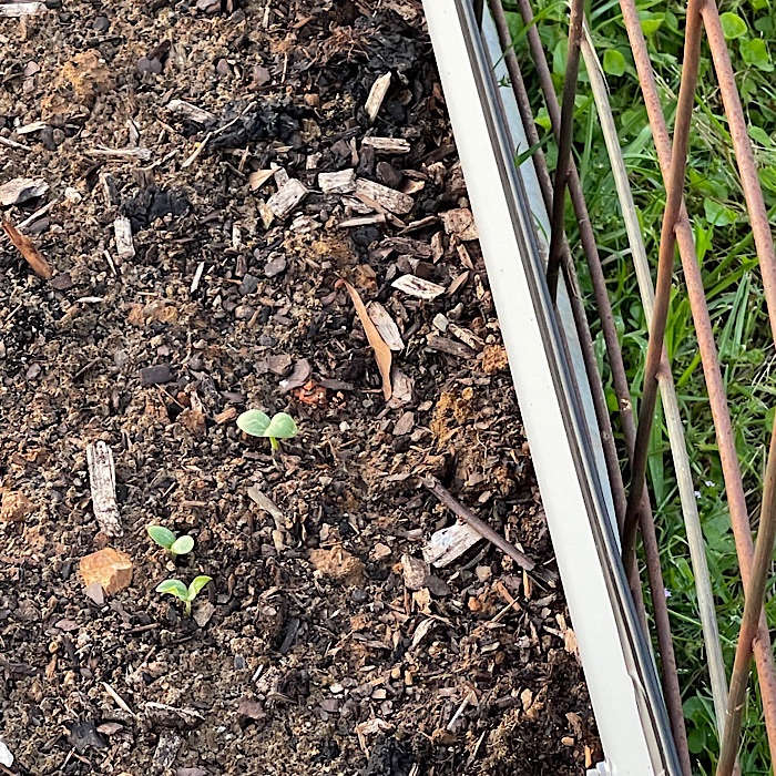 I had four marigolds plants I also planted. Using the square foot method of weeding, I weeded the garden beds. I took one square at a time and removed grass and other unwanted plants from a square.