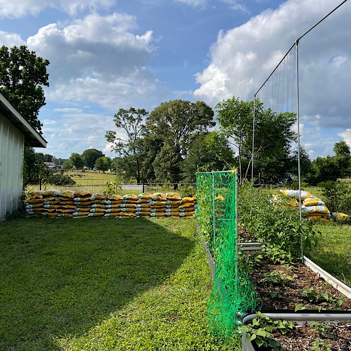 On Wednesday (May 28), Bruce and I worked in the yard. Bruce unloaded the dirt he purchased from the truck into the lawnmower cart. Using the lawnmower, Bruce pulled the cart to the garden area and the north fence. He would unload the cart, placing the bagged dirt next to the fence. He made several trips. Once the dirt was unloaded, Bruce put the cart away in the barn. Off he went to mow the front yard.