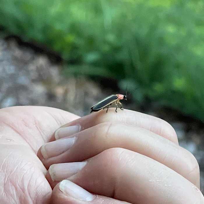We had three fireflies right in front of us. They were so close, Bruce reached out and carefully caught one.