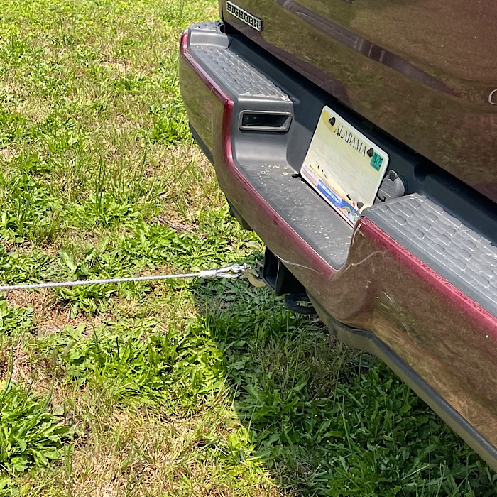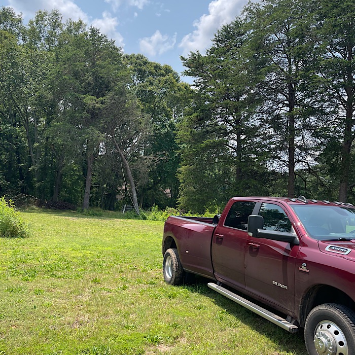 On Monday (June 2), Bruce determined the ground was dry and hard enough to take the truck into the back pasture. He wanted to use the truck to help safely take down the pine tree one.