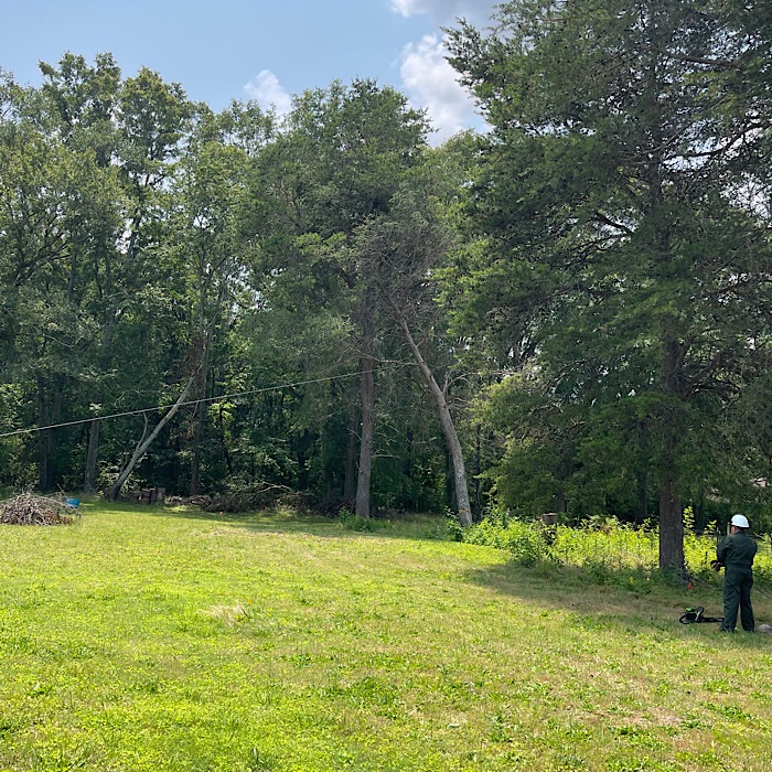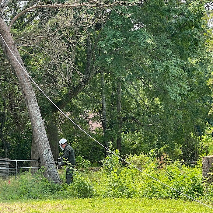 Yes, this one was particularly scary to me since the roots were partially out of the ground and the tree was caught in another tree. I was very afraid it could twist, but Bruce was able to take it down safely.