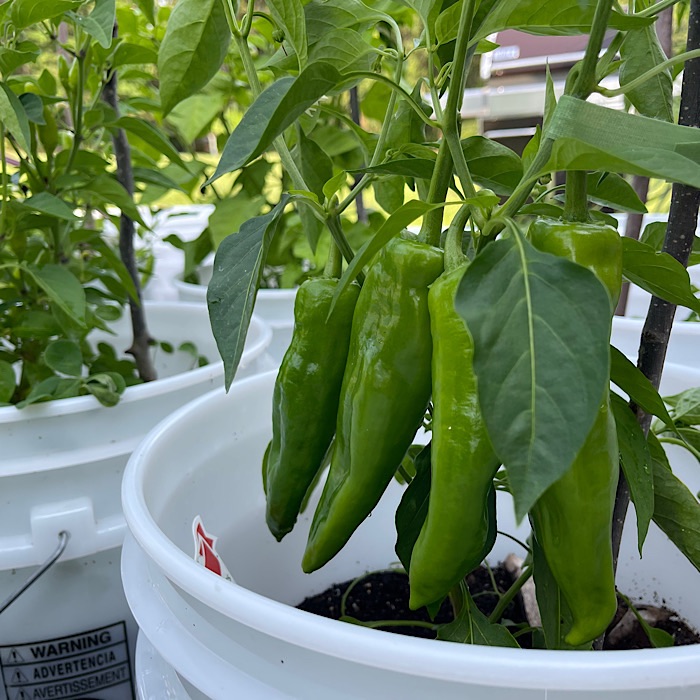 I thought I’d provide an update on growing peppers in five gallon buckets.