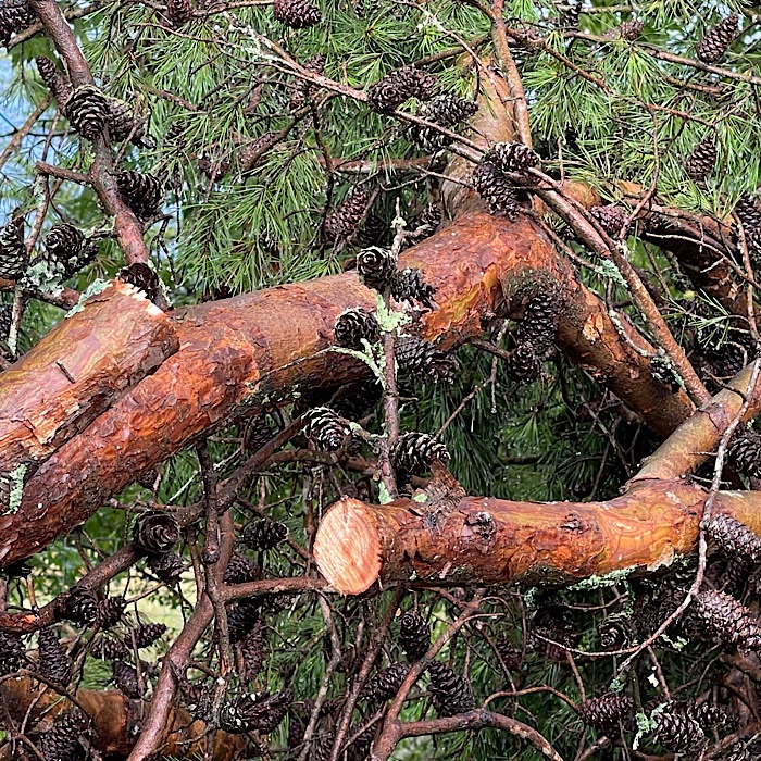In the above picture, you can see the broken pine tree number two. You can see where Bruce cut the attached trunk so the stump is now clear.