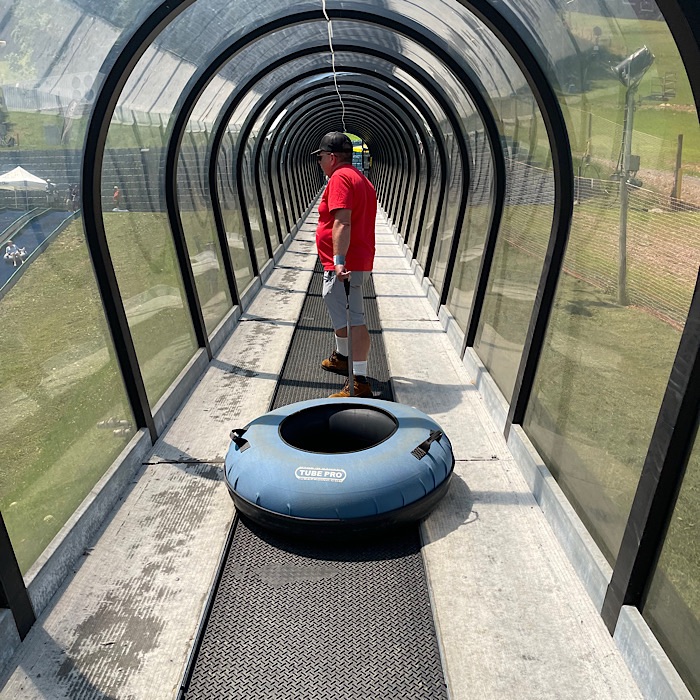 Next, Bruce, I and Dan went down a tube ride. To get to the top to ride the tube down, there was a people mover up to the top.