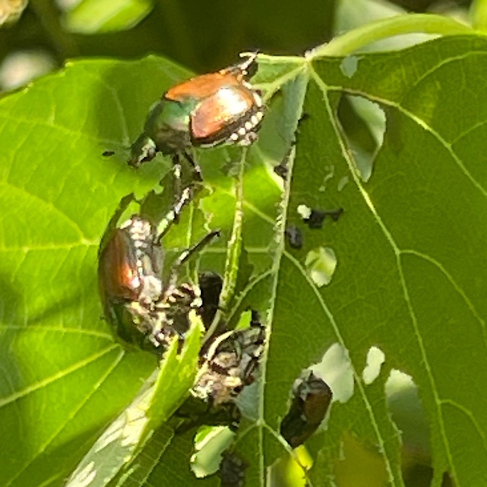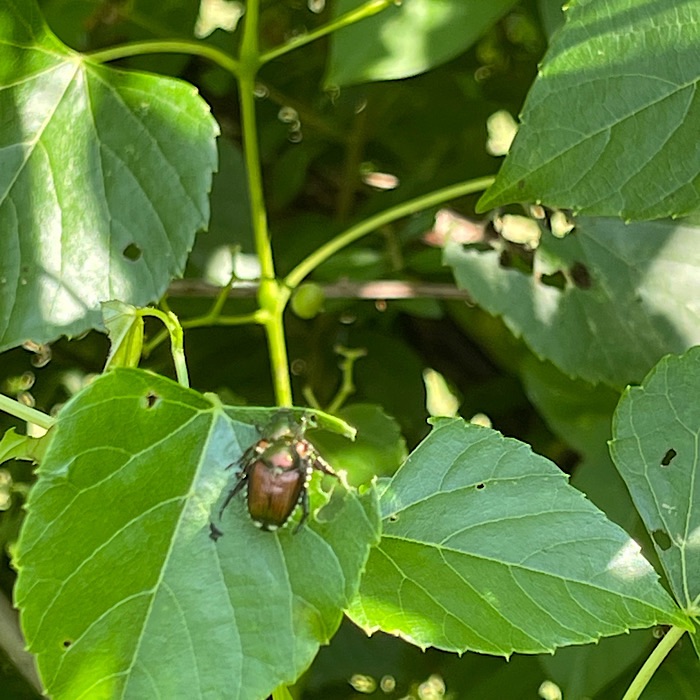 If the Japanese beetles weren’t so destructive, I would admire them. They are a pretty insect with their shimmering green and gold-brown shell. Since they consume grapes and beans (as well as other plants), I dread seeing the pest.