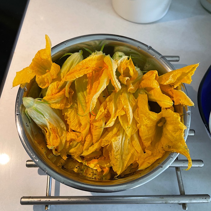 I went back outside to harvest the squash flowers to make fried squash blossoms.