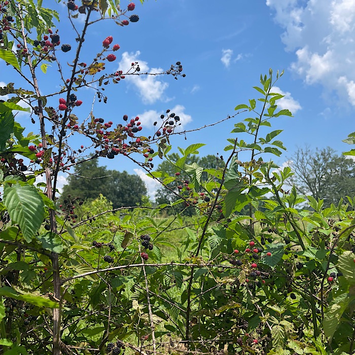 I looked for fish in the creek and damselflies. We snacked on blackberries on the walk back to the house. I saw several buckeye butterflies.