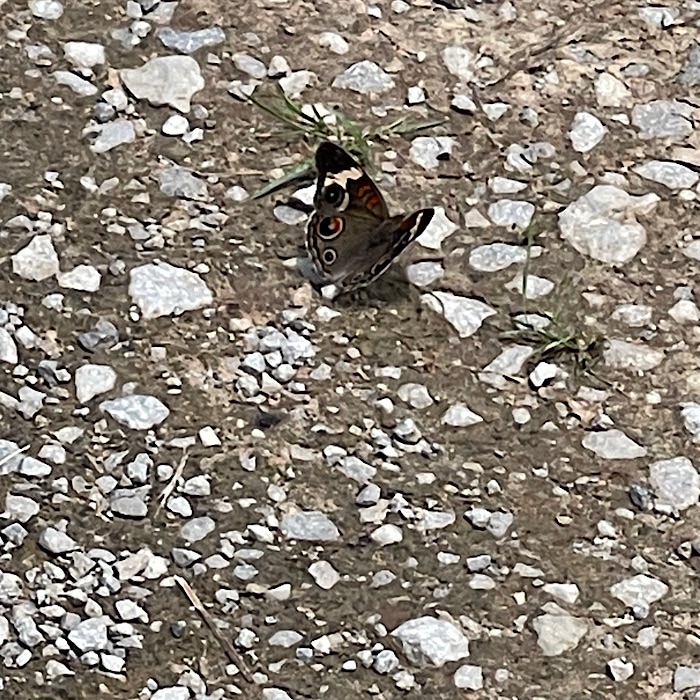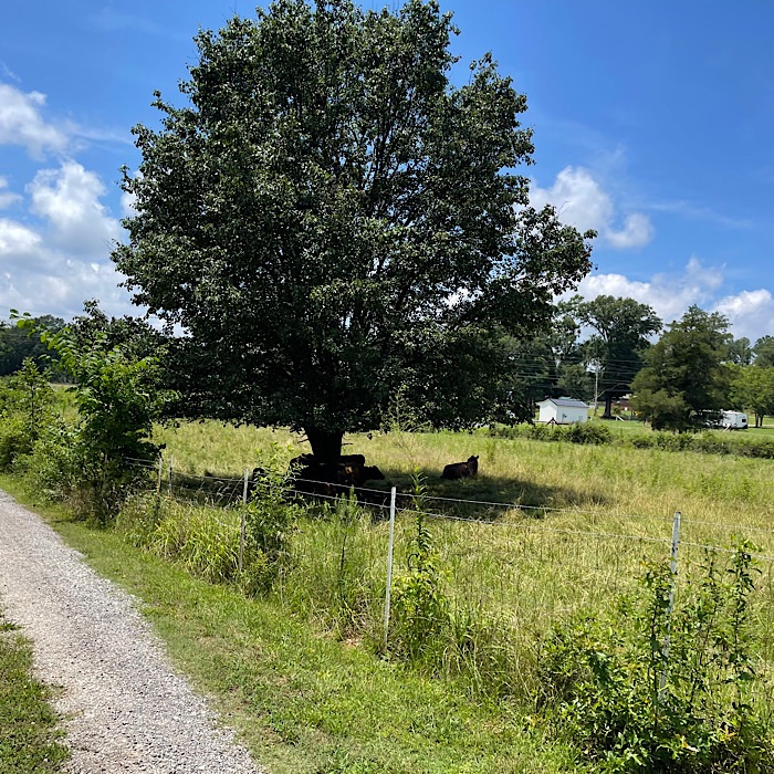On June 30 (Monday), we enjoyed our walk down the driveway to the mailbox. We saw several of our neighbors’ cows underneath the Bardford pear tree. Butterflies fluttered on the driveway as we walked down to the mailbox.