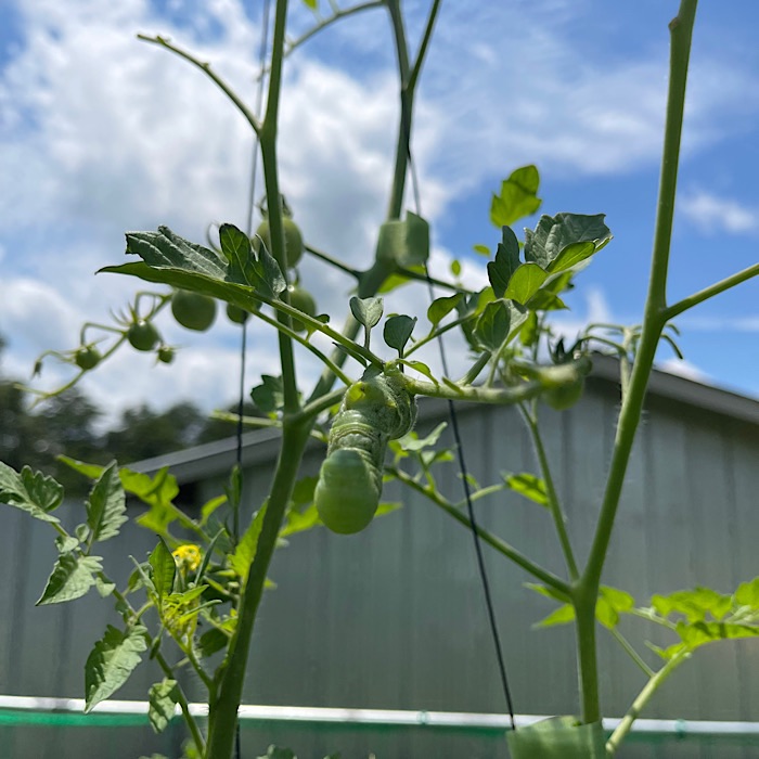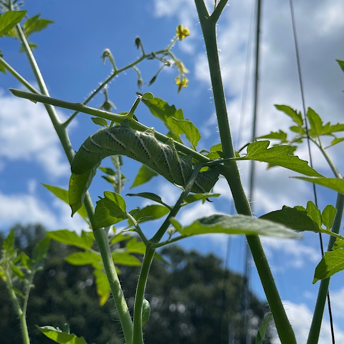 I checked the garden and discovered tomato hornworms on some of the tomato plants. They got squished.