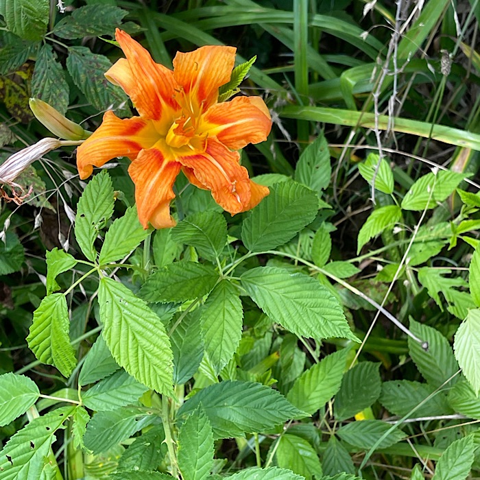 I was delighted to see the daylilies on the north fence blooming. They are double-flowered.