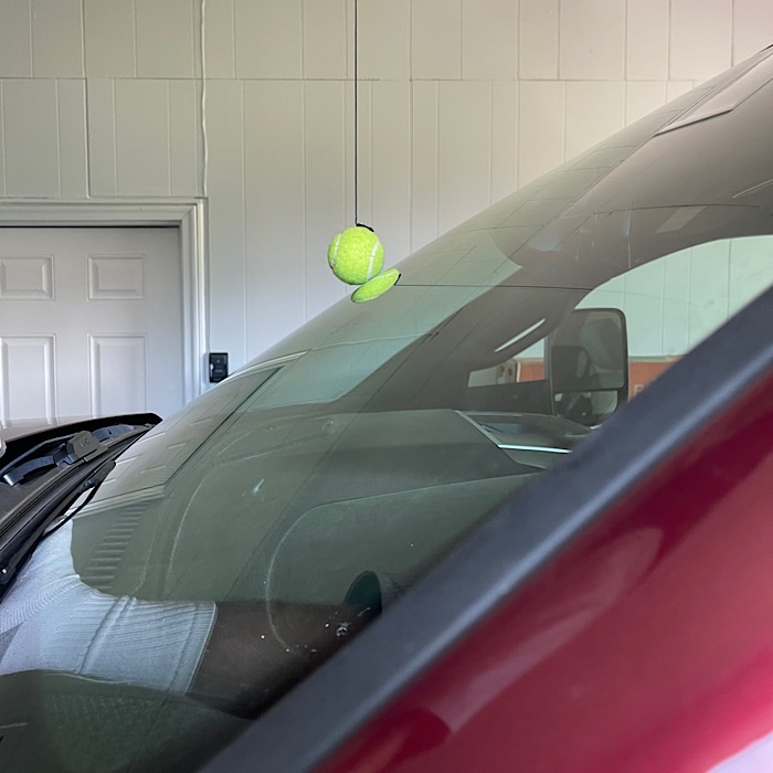 During the heat of the day, Bruce was looking for an indoor project. I suggested putting up the tennis ball in the garage so he’d have his stop for the truck set. This project took a bit of time, but it has made parking in the garage so much easier.