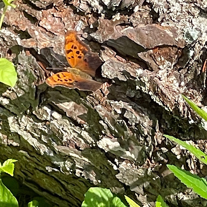Yes, the butterfly had its wings folded up. I saw it land on pine tree one. As I went to take a picture, it closed its wings. It was so hard to spot with the wings closed. I thought others might like to try and spot it. I was pleased I got a picture just as it started to open out its wings.