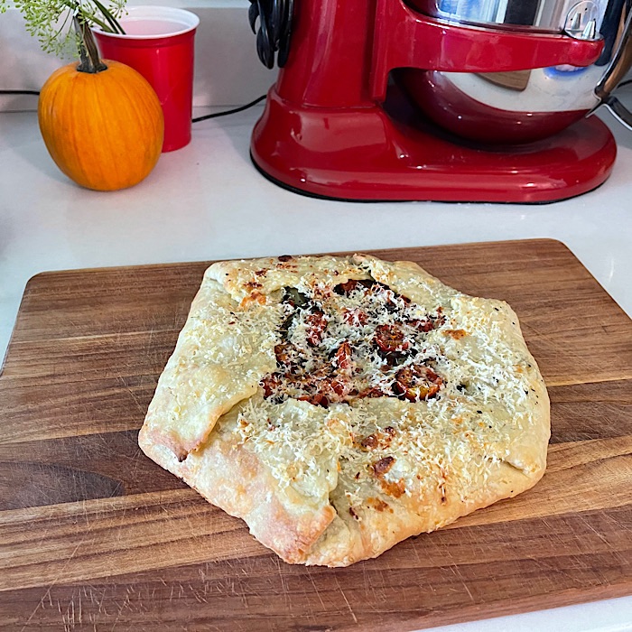 This recipe is a modification of the Savory Zucchini Galette from King Arthur Baking site. I have lots of zucchini, cherry tomatoes, and basil from the garden. I wanted to find a recipe that would be delicious and make a great lunch with the lovely produce from the garden.