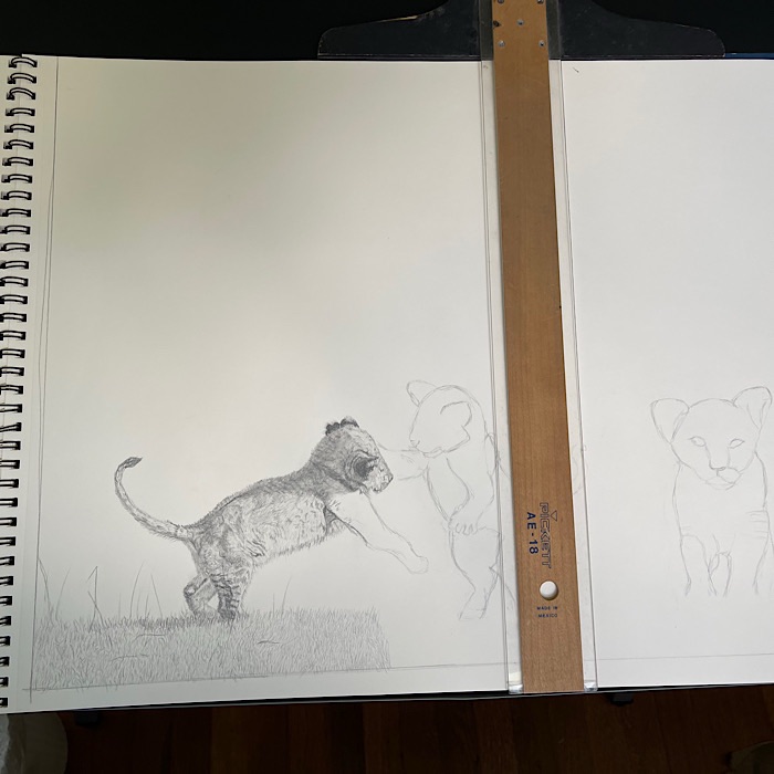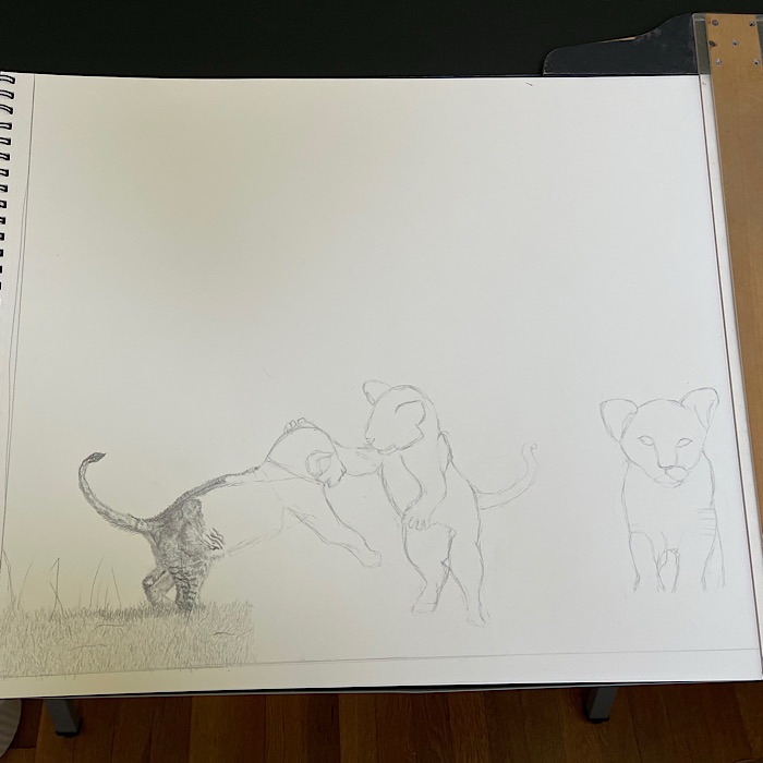 I am enjoying drawing the lion cubs. I hope my execution of the picture will match what I see in my mind’s eye.