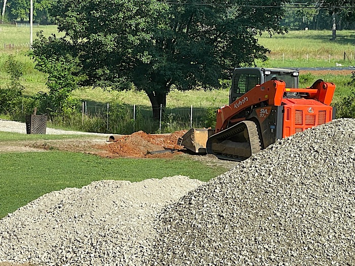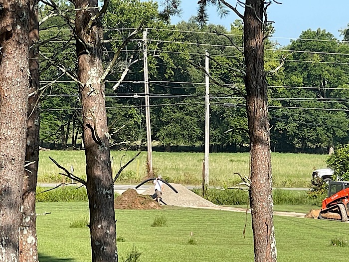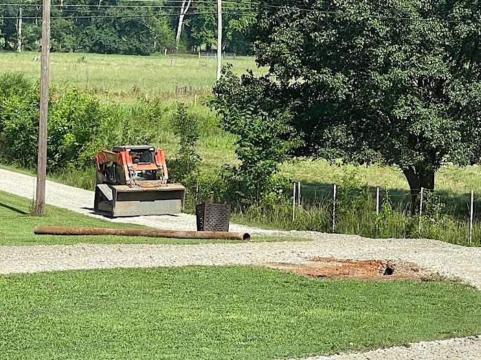 We will have to do something with the ditches around the drainage pipe. That raw dirt will wash away.