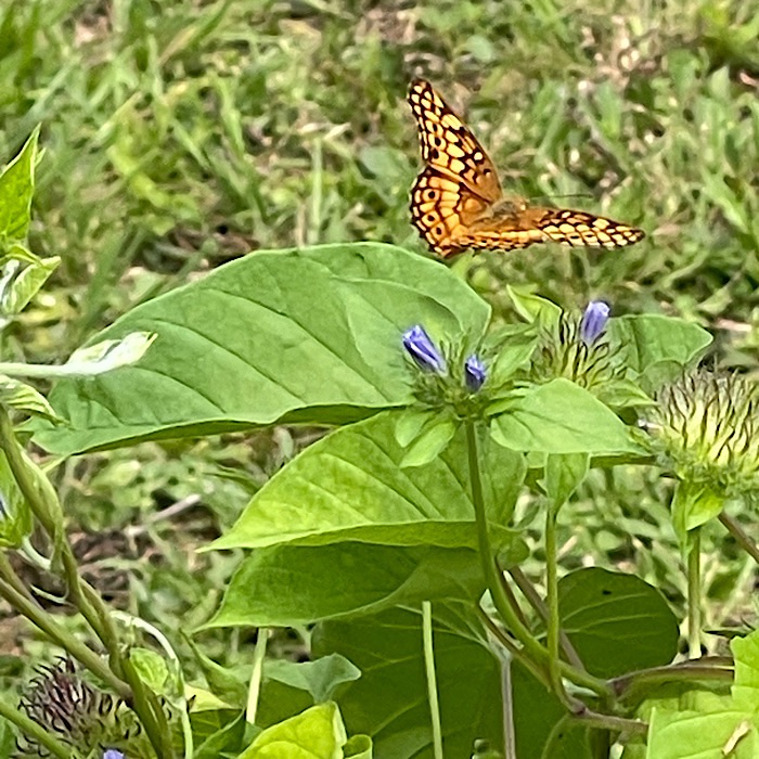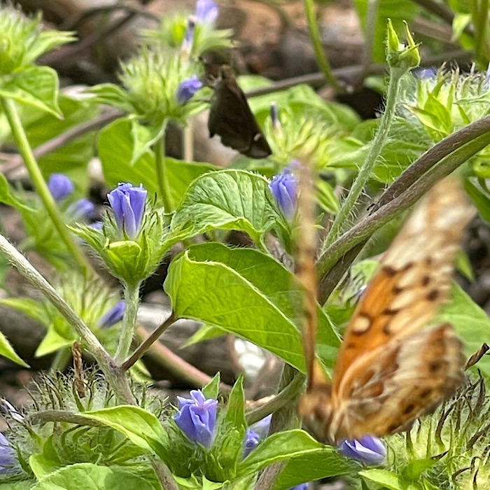 I saw several butterflies on a Hairycluster Vine aka Small Flower Morning Glory. I was trying to get a picture of the Clouded Skipper when this Variegated Fritillary photo bombed my picture.