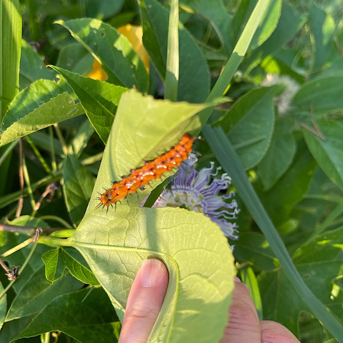 Julia, I commend you and Bruce yet again for the wonderful and important work you are doing on behalf of wildlife, wildflowers, and the ecosystem. It is wonderful to see so many butterflies enjoying the nectar from the fruit of your labor. I have seen few here, even during peak bloom time, and only a couple of bees when the clover first bloomed. The passion fruit flower is so stunning. Now, about those cubs, which you already know I have fallen in love with, the first thing that popped into my mind when I saw the work on the second cub was “I’ma slap some sense into you yet!” I also got a laugh out of Bruce’s “composting experience! Finally, I am glad you were able to get some soy beans! I love edamame.