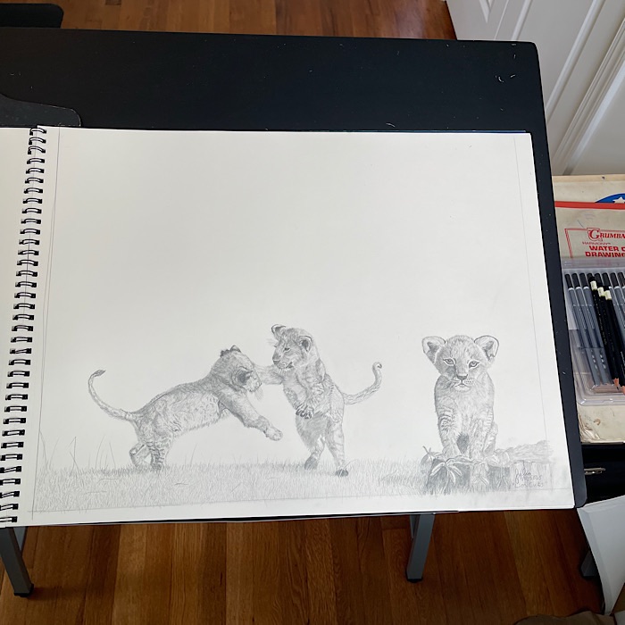The cub’s left ear (the one on the right side of the drawing) wasn’t in the right spot. It was too high on the head and slightly too big. I didn’t realize it until I had completed the ear.